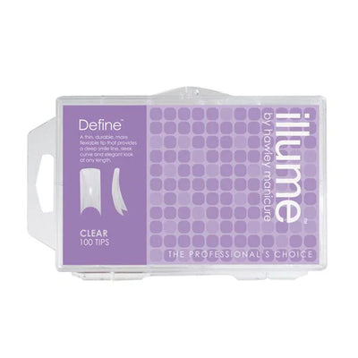 Let your creativity shine with the Hawley Illume Define Clear Tips – 100 Pack. These well-less tips feature a sleek curve and a deep, defined smile line, offering a flawless foundation with no need for blending. Made from a strong yet flexible material, their crystal-clear finish makes them ideal for showcasing detailed nail art. Elegant, durable, and effortless – they’re the ultimate choice for artists and professionals alike.