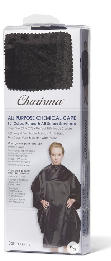 The Olivia Garden Charisma Chemical Cape is innovative, waterproof, and stain proof. The ideal cape for all salon services. A perfect fit hook neck closure fits all sizes, perfectly, easily, and comfortably. Washer and dryer safe with no ironing required.