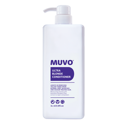 The MUVO 1 Litre Ultra Blonde Conditioner assists in eliminating yellow tones while leaving hair more manageable and vibrant. It helps in removing unwanted yellow and brassy tones from blonde, grey, bleached and highlighted hair. This hydrating formulation is enriched with maximum strength and violet dye to ensure optimum toning. Davidson Plum extract helps to prevent fading and leaves hair manageable, vibrant and shiny.