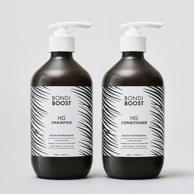 Shampoo and conditioner set that promotes thicker, fuller, healthier hair.