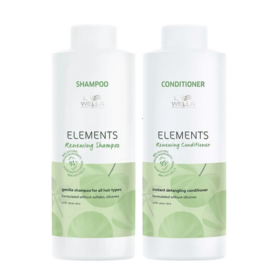 Wella Elements Lightweight Renewing Shampoo, Conditioner Duo set. Wella Elements Lightweight Renewing shampoo preserves and nourishes hair from root to tip. Wella Elements Lightweight Renewing conditioner strengthens each hair fiber from within and helping repair hair.