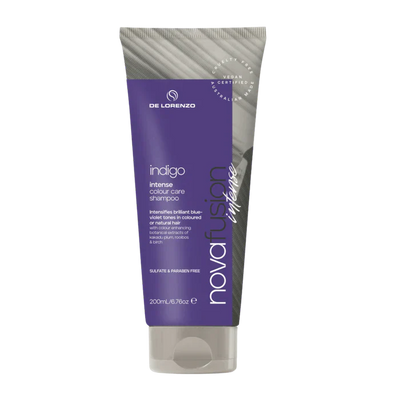 De Lorenzo Novafusion Intense Indigo Shampoo's unique dual action of temporary colour with semi-permanent action allows for exceptional colour uptake, even results and longevity.