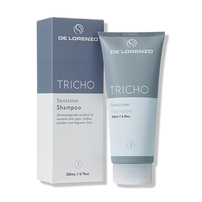 Formulated specifically for sensitive scalps, the De Lorenzo Tricho Series Sensitive Shampoo 200ml range is a unique four part, herbal non-Irritant range boasting certified Organic Marrubium, Fennel Fruit and Soy Protein extracts to calm the scalp and help seal and protect the cuticles.