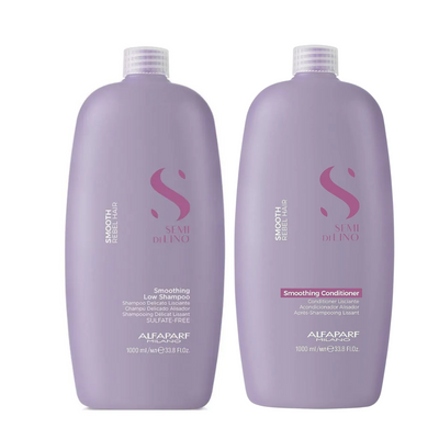 Alfaparf Milano Semi Di Lino Smoothing Low Shampoo & Conditioner Duo offers two of Alfaparf Milano's best-selling hair care products, specially formulated for use on unruly, rebel hair.