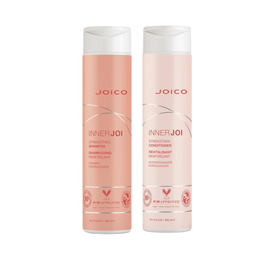 Revitalise and fortify your hair with the Joico InnerJoi Strengthen Duo. This potent collection harnesses the power of Coconut and Abyssinian Oils—eco-friendly superfood antioxidants—to repair and strengthen damaged strands. Designed to prevent future breakage, each product in this trio works to nourish and rejuvenate your hair, leaving it feeling soft, bouncy, and brilliantly shiny with every use. Embrace healthier, more resilient hair with the ultimate in restorative care.