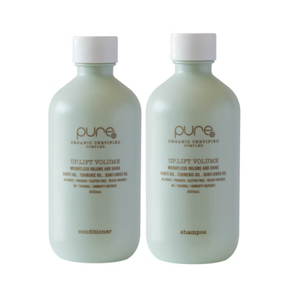 Pure Uplift Volume Duo gently adds weightless volume to fine or flat hair. Exclusive ‘Pure Organic Complex’ (certified 100% organic extracts) and Buriti oil up-lifting volume adding fullness and shine.