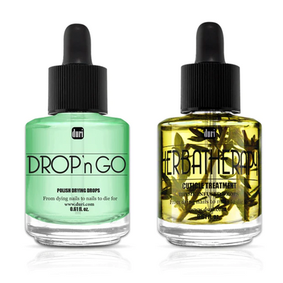 The duri Nail Growth Duo includes 1x duri Drop 'n' Go Polish Drying Drops 15ml and 1 x duri Herbatherapy Cuticle Oil 15ml.