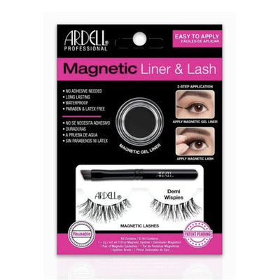 Line and lash on the go with Ardell Magnetic Liner & Lash Demi Wispies. These magnetic falsies feature a flared demi lash style for adding extra drama to your lash look. Apply them using the magnetic gel eyeliner included in kit.