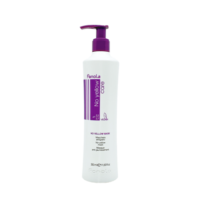 A conditioning anti-yellow hair mask infused with strong violet pigments to effectively tone down unwanted yellow, brassy tones on bleached, highlighted, blonde or grey hair with long-lasting effect. Fanola No Yellow Mask seals the cuticle with an acidic pH to create a protective violet film which combats yellow reflections whilst leaving the hair with a richly smooth, satin finish.