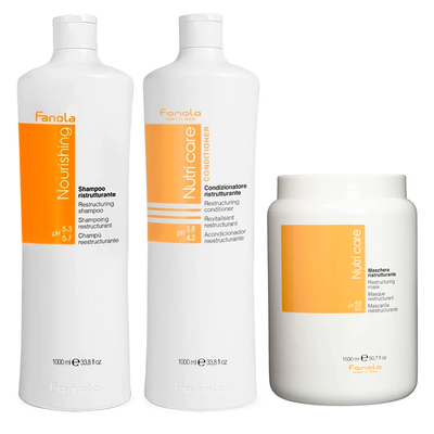 Achieve extraordinary softness and shine with the professional Fanola Nourishing Restructuring Supersize Trio Pack, formulated to deeply restructure dry and frizzy hair making it brilliantly soft, smooth and full of life. This Trio Contains: