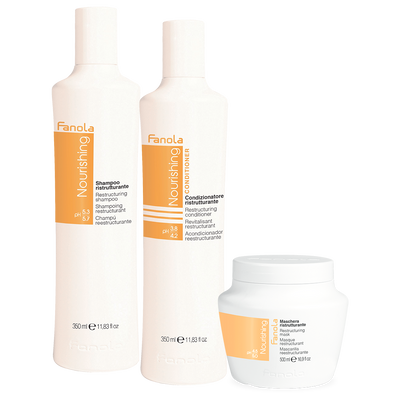 Achieve extraordinary softness and shine with the professional Fanola Nourishing Restructuring Trio Pack, formulated to deeply restructure dry and frizzy hair making it brilliantly soft, smooth and full of life. This Trio Contains:
