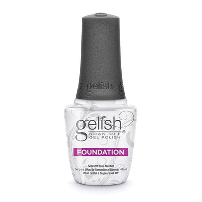 Get gorgeous nails in less than 15 minutes with the Gelish Soak Off Gel system. Gelish Soak Off Gel Polish Foundation Base Gel 15ml is the base coat required before applying Gelish Gel Polish. The natural nail is protected from damage and discoloration with the use of the Foundation Base Gel and long lasting wear of Gelish is ensured. It is brushed on and cured for 10 seconds in a 36 watt LED or 2 minutes in 36 watt UV Light.