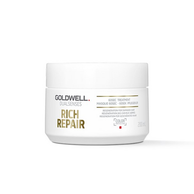 Repair and revive damaged brittle hair instantly with the Dual Senses Rich Repair 60 second Treatment by Goldwell. Formulated to reduce split ends and to target damaged hair particles with the microprotec and intralipid complex.