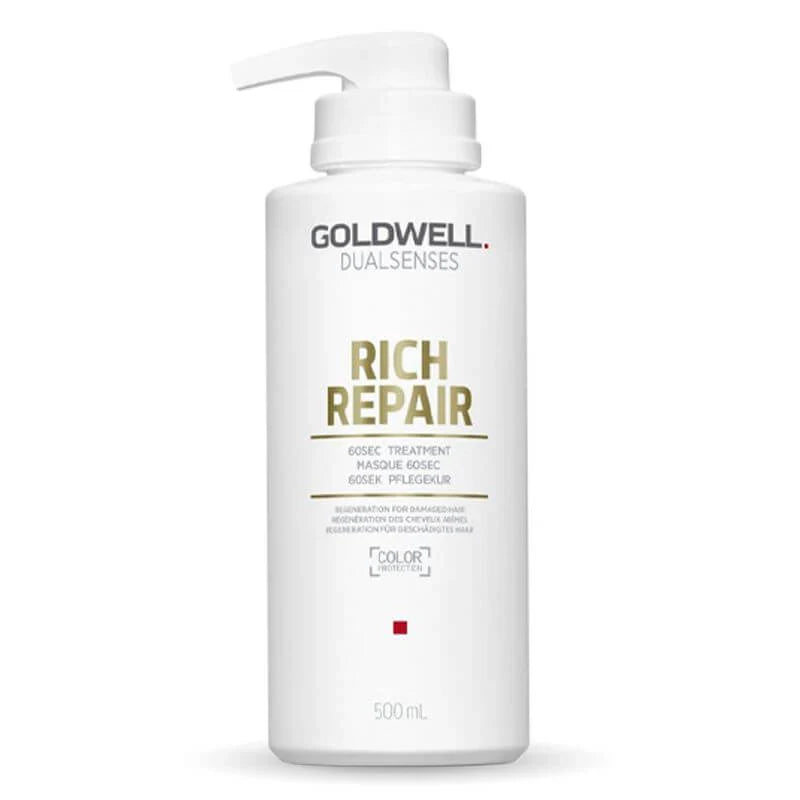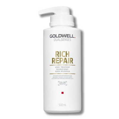 Repair and revive damaged brittle hair with Goldwell Dual Senses Rich Repair 60 second Treatment. Formulated to reduce split ends and to target damaged hair particles with the microprotec and intralipid complex.