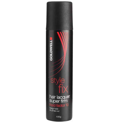 A long-lasting, firm hold hair lacquer that keeps your style in place. The Style Fix Hair Lacquer Super Firm hairspray by Goldwell will not flake or dehydrate your hair, and is easily brushed or washed out.