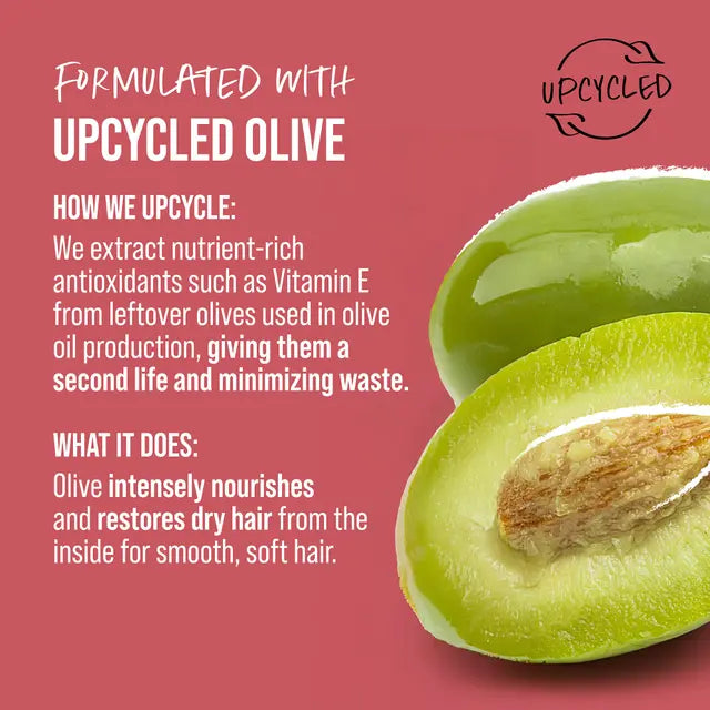 - Nourishing Formula: Infused with upcycled olive extract and antioxidants to strengthen and protect hair.