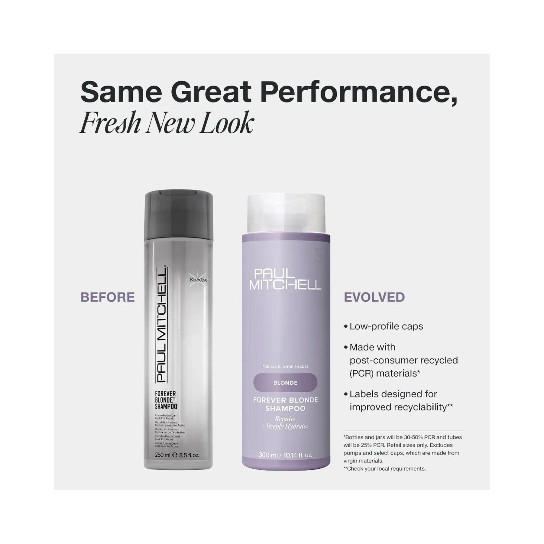 Forever Blonde Shampoo by Paul Mitchell softly cleanses blondes with highlights or lightened hair, while actively restoring damaged strands. This colour-protecting formula maintains vibrant, healthy hair, with KerActive protein strengthening and smoothing the cuticle for sleek, professionally finished hair.