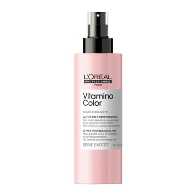 L'Oreal Professionnel's Vitamino Colour multi-benefit leave in treatment is enriched with resveratrol and is designed to treat all colour-treated hair types and needs. Just one spray gives you ten instant benefits, such as perfecting your colour result, protecting your hair from the dryness that comes from blow-drying and much more.