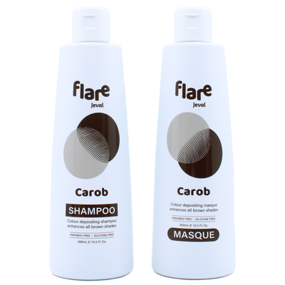 Transform your locks with Jeval Flare Carob Shampoo & Maque Duo 300ml, designed to gently cleanse, warm up and even out chocolatey-brown shades while enriching natural highlights. A blend of natural oils, Vitamin E and Olive Butter offers nourishment and strength to your hair.