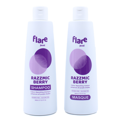 Flare Razzmic Berry Shampoo & Masque Duo. Includes 1 x Jeval Flare Razzmic Berry Shampoo and Masque 300ml.