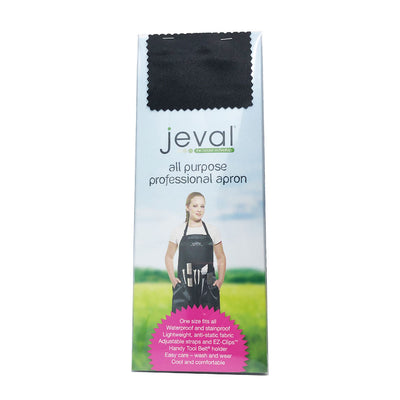 A one size fits all waterproof and stain proof lightweight apron made from an anti-static fabric with adjustable straps and EZ Clips Handy Tool Belt holder. Jeval All Purpose Professional Apron is a must have for hair professionals.