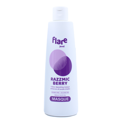 The Jeval Flare Razzmic Berry Masque is a magenta delight that will boost up all purple tones in the hair and add a pinkie purple tinge on lightened hair by mixing with Flare Frosted