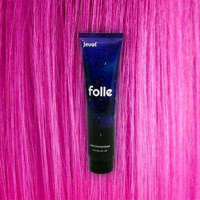 folle Direct Dye Hair Colour is a bold and vibrant semi permanent dye with Bold Brights, Perfect Pastels and Electrifying UV Neons. Jeval folle is a vegan and cruelty free semi permanent hair colour that is ammonia free, PPD free and has no peroxide. For best results apply to pre-lightened or bleached hair. To maintain colour, use Jeval Don't Go Changing Shampoo. The possibilities are endless with Jeval folle.