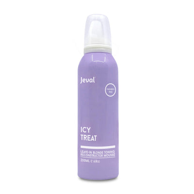 Like Marshmallow but Cooler! Jeval Icy Treat Leave-in Blonde Toning Reconstructor Mousse is a multi use cool toned leave-in mousse formula with sunflower seed oil combines milk proteins, vitamin E and Pro-vitamin B5 to penetrate and strengthen the hair. The blue/violet pigments contained within allow instant toning to pre-lightened, natural grey and blonde hair. Use as a quick leave-in treatment, a porosity equaliser, or even mix with blonde colours to intensify toning reflect.