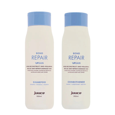 The Juuce Bond Repair Shampoo and Conditioner 300ml Duo Bundle is specially formulated for damaged, over-processed, or chemically treated hair, this salon-quality set is designed to rebuild internal hair bonds while providing essential moisture and shine.