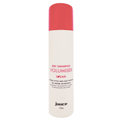 Juuce Dry Shampoo Volumiser is a transparent powder-based spray that cleanses and absorbs extra oil and buildup while being gentle on the hair. It adds volume, body, and bounce to all hair types. UV protection is provided, and the hair is left feeling clean, soft, and smelling fresh.
