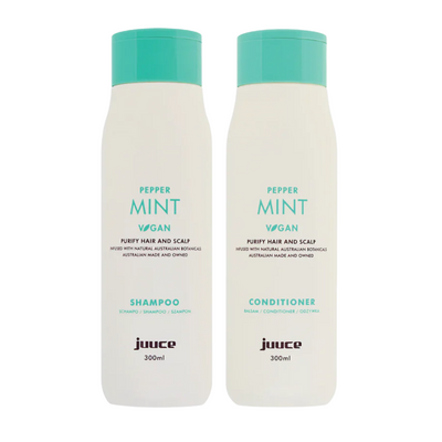 The Juuce Peppermint Shampoo and Conditioner Duo, each bottle containing 300ml, offers a carefully formulated blend to cleanse and moisturize. This combination refreshes the scalp, supports healthy hair growth, and leaves hair feeling nourished, resilient, and rejuvenated.