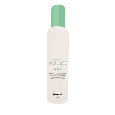 Juuce Xagerate Mousse increases body and bounce for fuller looking hair with thickening control. Contains light vitamins to enhance condition and shine.