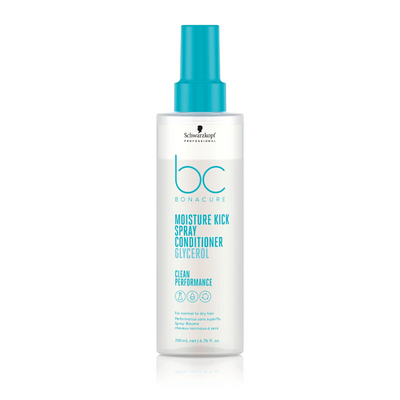 Schwarzkopf Professional BC Clean Performance Moisture Kick Spray Conditioner is a leave-in spray conditioner , specially formulated to instantly condition and hydrate hair that is normal to dry, textured, brittle or curly. With no silicones or artificial colourants, the formula helps the hair retain its optimal moisture level, for a lightweight feeling that lasts up to 48 hours. Use as a hair detangling spray to achieve healthy-looking, smooth hair with improved elasticity and manageability. Vegan* hair product.