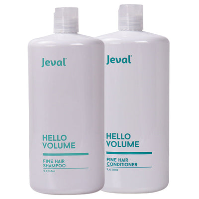 Jeval Hello Volume Fine Hair Shampoo & Conditioner Duo Pack. Includes 1 x Jeval Hello Volume Fine Hair Shampoo and Conditioner 1 Litre.