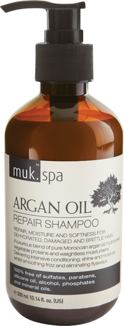 Muk Spa Argan Oil Repair Shampoo 300ml is the perfect formula to repair, add moisture and softness to dehydrated, damaged and brittle hair.