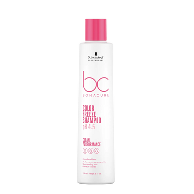Schwarzkopf BC Clean Performance PH 4.5 Color Freeze Shampoo is a colour-protecting shampoo that cleanses the scalp and over-processed coloured hair while providing extra care and shine. It's uniquely designed to strengthen the hair structure and maintain an optimal pH 4.5, resulting in almost zero colour fade. The gentle formula effectively cleanses the scalp and hair without stripping away natural oils, leaving hair feeling soft, smooth, and manageable. With its nourishing and revitalising formula, this shampoo promotes healthy and vibrant hair.