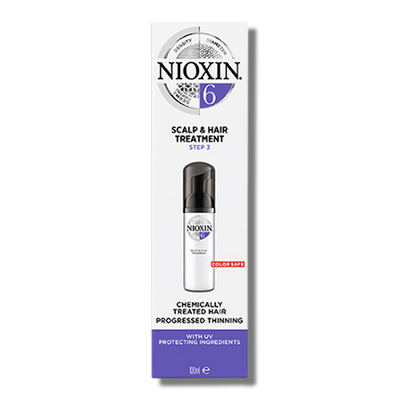 Nioxin System 6 Scalp & Hair Treatment is a specially designed treatment for noticeably thinning, medium to coarse, natural or chemically-treated hair that delivers smoothing control to hair while protecting the scalp and restoring moisture balance.