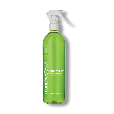 Mancine's Pre Wax Oil contains Aloe Vera which acts as an anti-inflammatory to soothe the skin and stop wax from adhering to the skin.