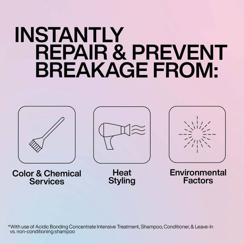 The first step in Redken's Acidic Bonding Concentrate regimen, the Intensive Pre-Shampoo Treatment provides strength repair in 1 use*. With Redken's highest level of Citric Acid + Bonding Care Complex, this rinse out treatment provides 14x smoother hair* and 63% less breakage*. The concentrated intensive treatment formula reinforces weakened bonds and prepares hair for the full benefits of the Acidic Bonding Concentrate Shampoo and Conditioner.