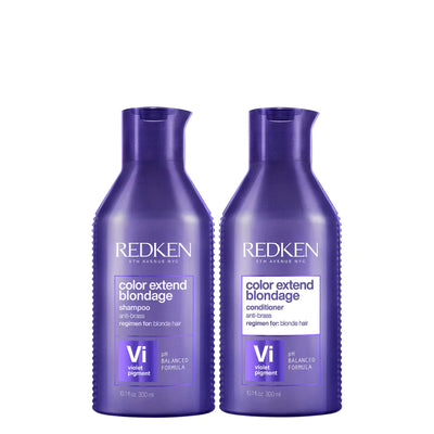 The Redken Colour Extend Blondage 300ml Shampoo and Conditioner Duo is the perfect solution for blonde and highlighted hair that needs color-depositing and protection.