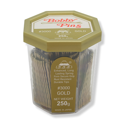 Style your hair right and hold it with a secure grip using the 555 Bobby Pins No.3000 2" Gold. Made from high quality metal, these essentials are rust resistant and have long lasting durable tips. Highly versatile, designed to blend into your hair color. Perfect for use on all hair types and lengths.