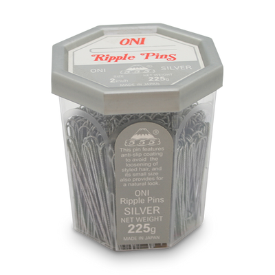 Perfect your upstyle with the essential 555 Oni Ripple Pins 2" Silver. These anti-slip Ripple pins protect your hairstyle from loosening and are designed to blend into your hair color for a natural finish. The cushioned tips ensure your scalp is protected. Made from rust resistant and durable quality metal. Highly versatile, can be used on all hair types.