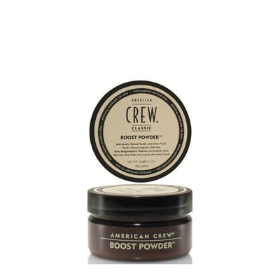 Boost volume and thickness in hair with American Crew Boost Powder. A weightless powder formulated to add grit and gravity defying texture to hair. This matte finish powder can be layered with any other American Crew styling product.