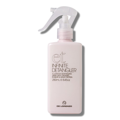 Hydrate, condition and detangle hair with De Lorenzo Essential Infinite Detangler - 250ml, a leave-in detangling spray infused with organic rosehip & wheat proteins to soften the hair and protect it from UV and environmental stressors