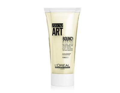 The L'Oreal Professionnel Tecni.ART Bouncy & Tender is a 2in1 gel-duo that consists of a sculpting cream + Intra-Cylane that provides 72hr anti-humidity* protection and anti-frizz* action.