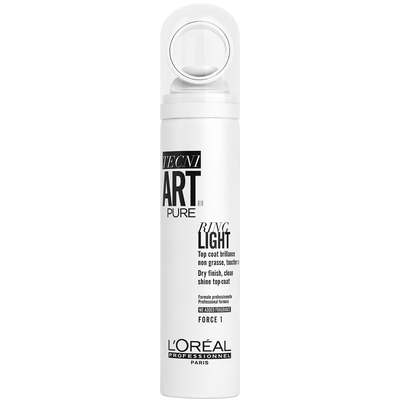 L’Oréal Professionnel Ring Light Pure Spray is the first micro-dispersed professional high shine spray for the lightest ring-light effect. Formulated without added fragrance for the cleanest use and comfort.