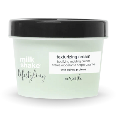 milk_shake® lifestyling texturizing cream is a bodifying molding cream, particularly suitable for fine hair, when applied to dry hair it gives body, giving separation and control to hair strands for creative and unkempt looks. Contains organic fruit extracts, quinoa and milk proteins, Integrity 41® and a UV filter to protect hair.