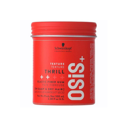 The Schwarzkopf Osis Thrill Texture Gum with mega elastic fibers is bendable and mouldable. Strong texture control for shine and separation.