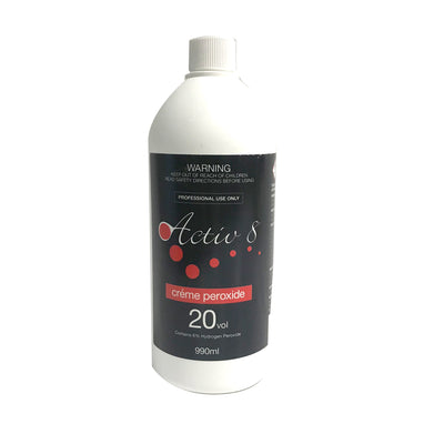Achieve your desired hair color exactly as you want it with the Activ8 Creme Peroxide 20 vol (6%) 990ml. The crème based formula lightens the natural pigment of your hair in a safe way for an easy, new color replacement. For salon-use only.