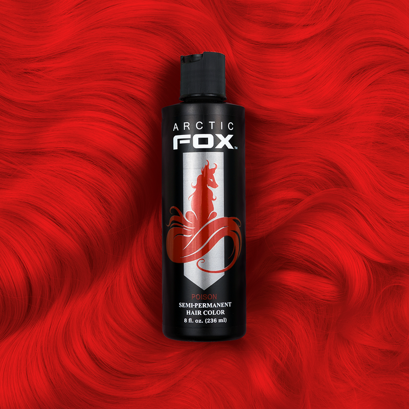 Pick your poison...this is our most vibrant, truest red and will give you a fiery look. Because Poison has a slight orange undertone, it will not fade to pink, it will fade into a lighter version of itself. Poison will give a dark, subtle tint to darker tones of hair but will turn out most vibrantly on hair that is pre-lightened to around a level 8.